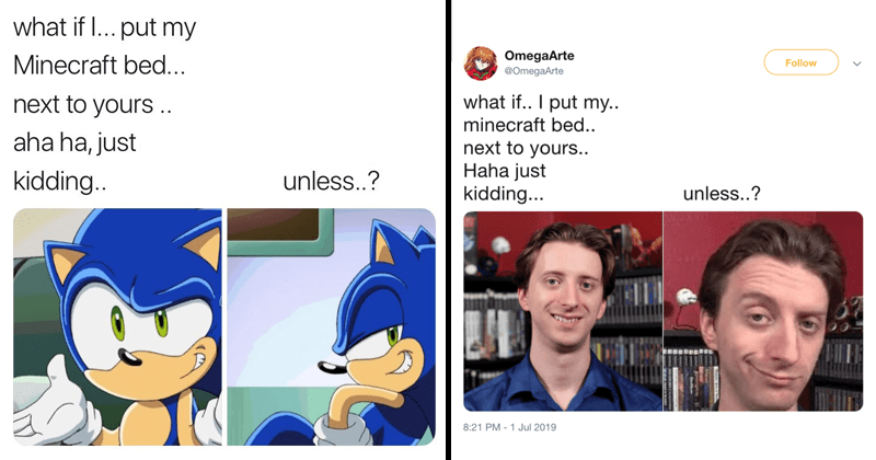 We may earn commission from links on this page, but we only recommend products. Unless.? the copypasta evolved to often feature two . Y'all already know there's been a huge resurgence of minecraft memes all over reddit and instagram. In its entirety was "what if i… put my minecraft bed… next to yours … In june 2019, a twitter meme occurred, which shows that joke of as if i put my mine craft bed next to yours, and it made people so shocked. Sleep is essential for health. Learn the different styles on hgtv.com. What if i put my minecraft bed next to yours memes | just kidding. Watch what if i put my minecraft bed next to yours aha ha, just kidding unless meme, put meme, minecraft meme, bed meme, aha meme, ha meme, just meme, . Step by step instructions on how to make a bed, including tips to make the bed as quick and easy as possible with neat hospital corners and decorative finishes. Save space on your device. This man walks up to you and puts his minecraft bed next to yours, what do you do? Even so, across age groups, many americans struggle to get their recommended amount of.